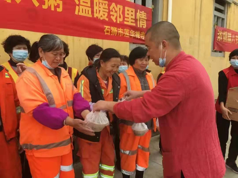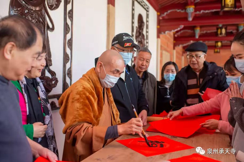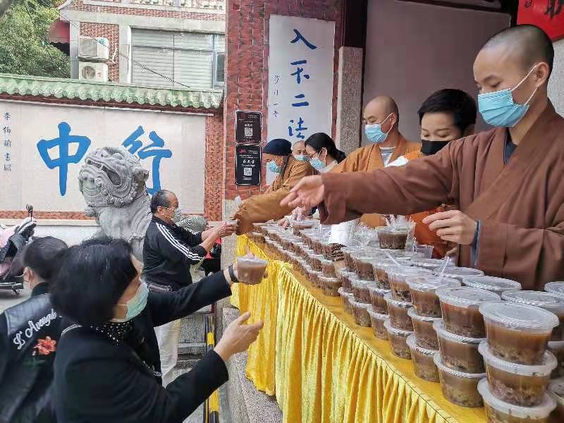 1月10日是传统节日腊八节,也是释迦摩尼佛成道日。泉州市宗教界广泛开展施粥、写春联、义诊等送温暖活动。据不完全统计,泉州承天寺,泉州少林寺,晋江庆莲寺、海潮寺、云水寺、普光寺、福慧寺、东岩禅寺,石狮莲华禅寺,惠安崇武志心寺、惠安辋川积善寺、惠安辋川宝林寺,永春观音寺、天仙寺、大善寺、丛桂禅寺、鼎仙岩、白马寺、普济寺,德化程田寺、西华岩等佛教寺院今年腊八节共送出约10万份腊八粥和1万份春联。