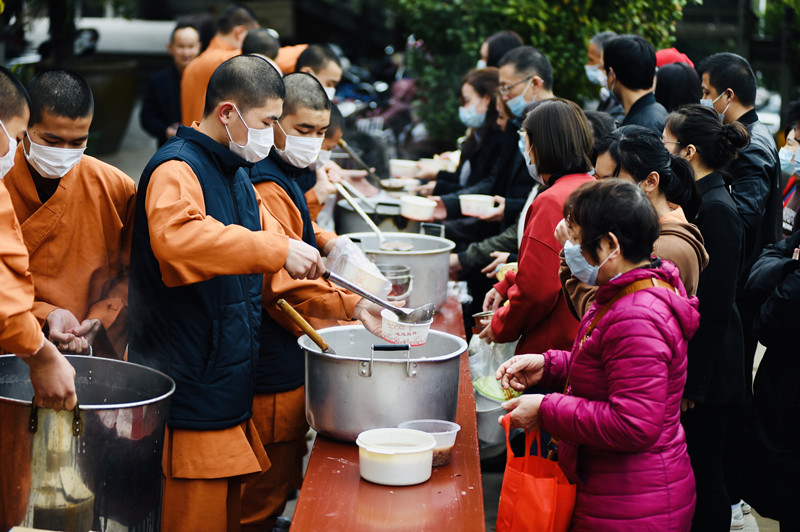 腊八施粥送温暖活动,增进了群众的获得感和幸福感,营造了喜乐祥和的新春氛围,彰显了佛教慈悲济世的精神,弘扬了中华民族仁者爱人的优良传统,是佛教界深入推进“四进”活动,积极与社会主义社会相适应的重要举措。