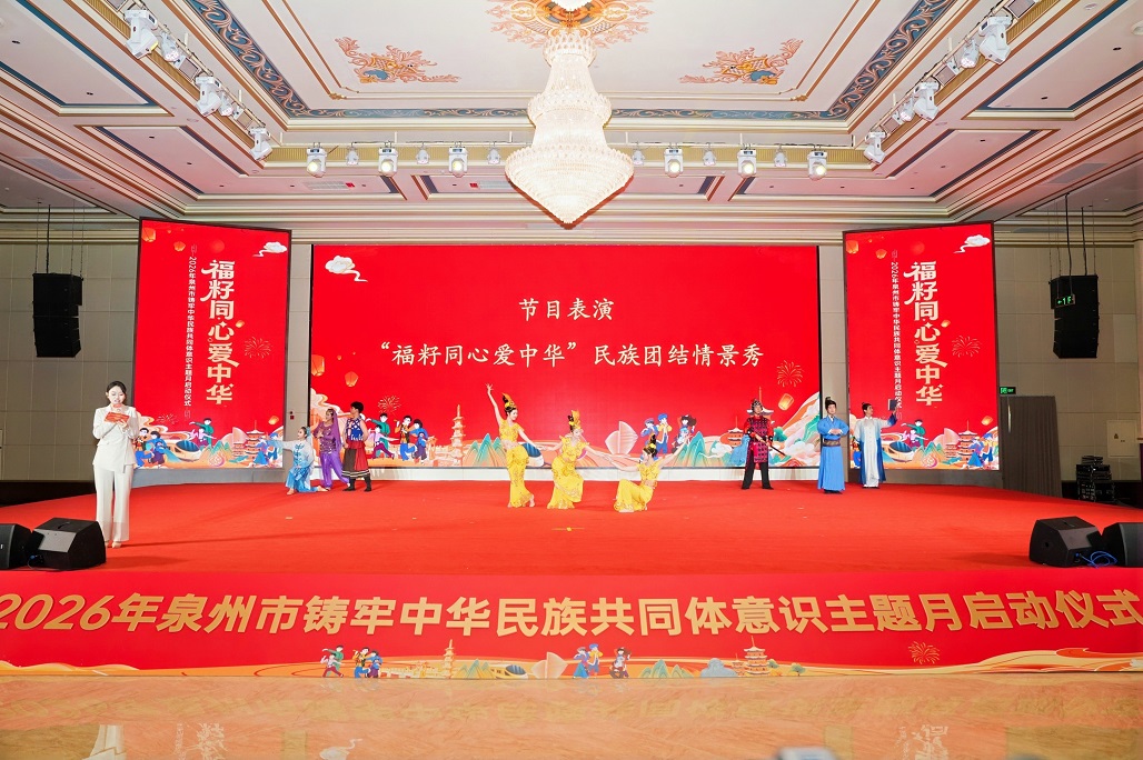 创新启动仪式,凝聚家国情怀。主题月启动仪式上,原创民族团结情景秀以“行者足迹”串联宋元海丝、同心筑堤、闽台一家、闽宁协作等场景,再现泉州各民族交往交流交融的历史,表达两岸共盼团圆的家国情怀,获人民网、福建日报等媒体关注报道。