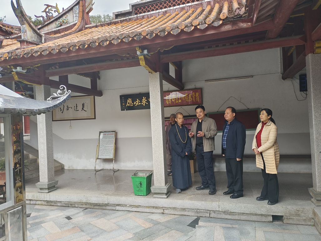 12月9日,德化县委常委、统战部部长陈东明率队深入宗教活动场所开展调研,先后走访戴云寺、灵鹫岩、仙峰寺等地,详细了解场所规范化管理、安全生产等工作落实情况。调研中,陈东明就贯彻落实近期各级关于宗教工作的部署要求,进一步提升宗教活动场所管理效能,促进宗教健康有序发展提出具体要求。