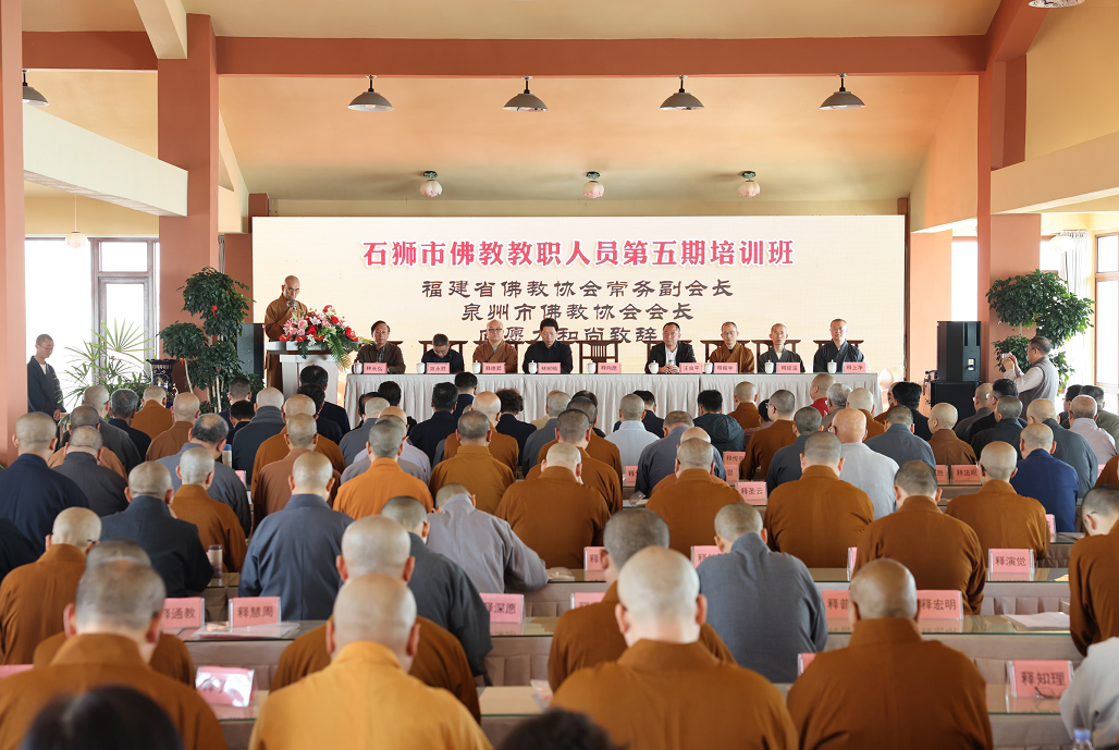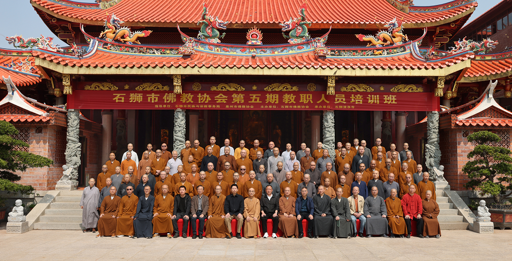 2026年4月9日,石狮市第五期佛教教职人员培训班在石狮清净寺举办。本次培训班以“学法规、守戒律、重修为、树形象”为主题,围绕百丈清规、佛教戒律、中国佛教发展简史等进行系统阐述,旨在进一步增强广大佛教教职人员的社会责任感和使命感,将时间和精力放在持戒修行、闻思经典、弘法利生、服务社会上来,身体力行做佛教中国化方向的践行者,共百余名教职人员参加培训。中国佛教协会副秘书长、福建省佛教协会常务副会长、泉州市佛教协会会长向愿大和尚,泉州市佛教协会副会长、泉州开元寺首座监院德昇法师,泉州市佛教协会秘书长姚永胜居士,泉州市佛教协会副秘书长上净法师以及石狮市民族宗教局、祥芝镇等相关领导出席开班式。