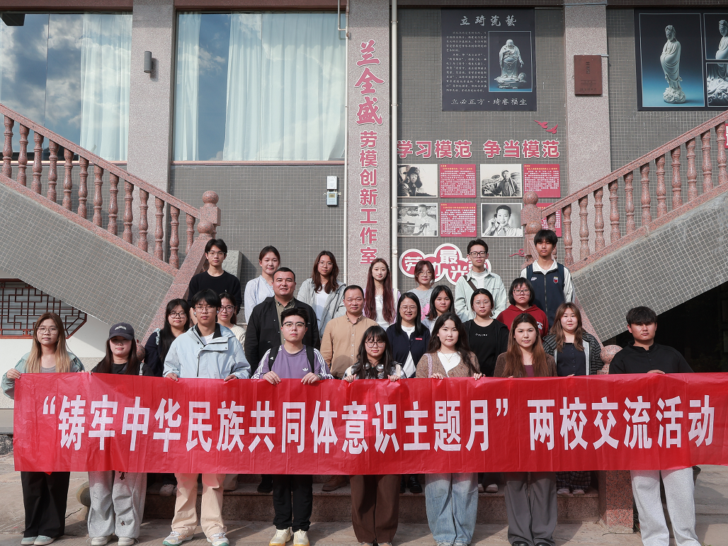三是组织一场匠心研学,在资源整合中汇聚合力。 依托“世界瓷都”独特优势,师生们走进泉州工艺美院特聘产业导师、全国技术能手、优秀少数民族代表兰全盛陶瓷大师工作室,沉浸式体验德化陶瓷技艺。兰大师不仅展示了精湛的制瓷技艺,更结合自身成长与创作经历,生动诠释“各民族文化互鉴融通”的时代内涵。现场师生围绕陶瓷技艺创新性发展与民族文化传承深入交流,深切体悟中华优秀传统文化是各民族共同创造的瑰宝,进一步坚定了文化自信、增进了民族认同。